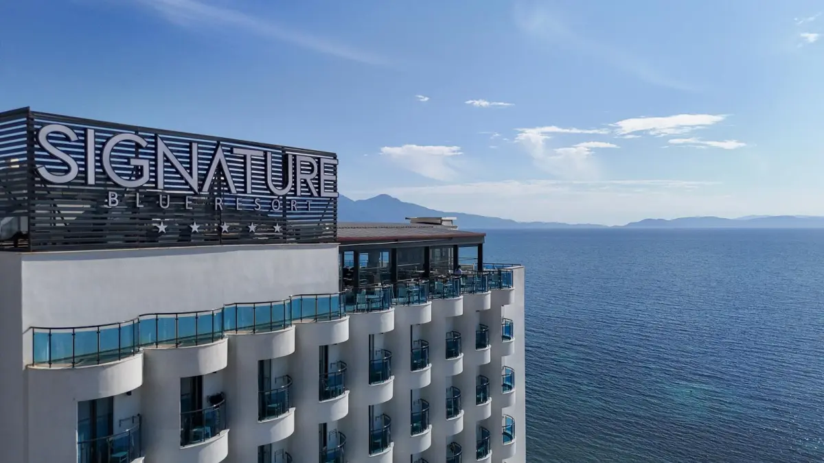 Signature Blue Resort Kuşadası, güneşin en güzel battığı noktada ege denizine sıfır konumlu, özel kum plajı, kapalı yüzme havuzu, restoran, snack bar, lobby bar, SPA ve su sporları üniteleriyle donanmış 111 özel odası ile değerli misafirlerine hizmet vermek üzere özenle tasarlanmıştır.